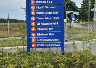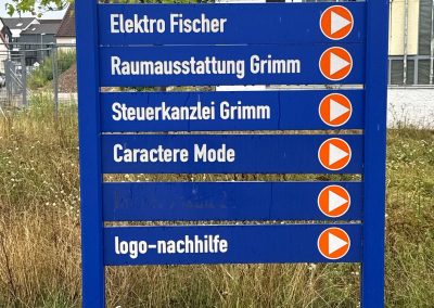 Kundenleitsystem mit Hinweis und Firmenhinweisschildern